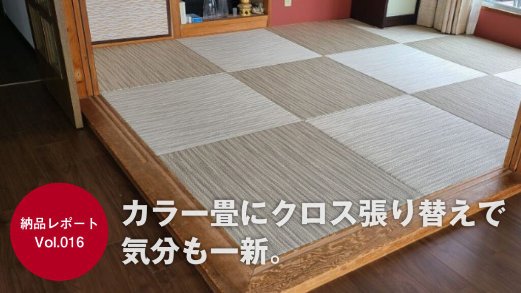 「30年間畳替えをしていなかった。どうせ変えるなら思い切って雰囲気を変えたい。」とクロスの貼替もされ、混色のカラー畳を選ばれました。「気持ちも一新できました」と言っていただきました。 ▶︎神戸市東灘区・マンション